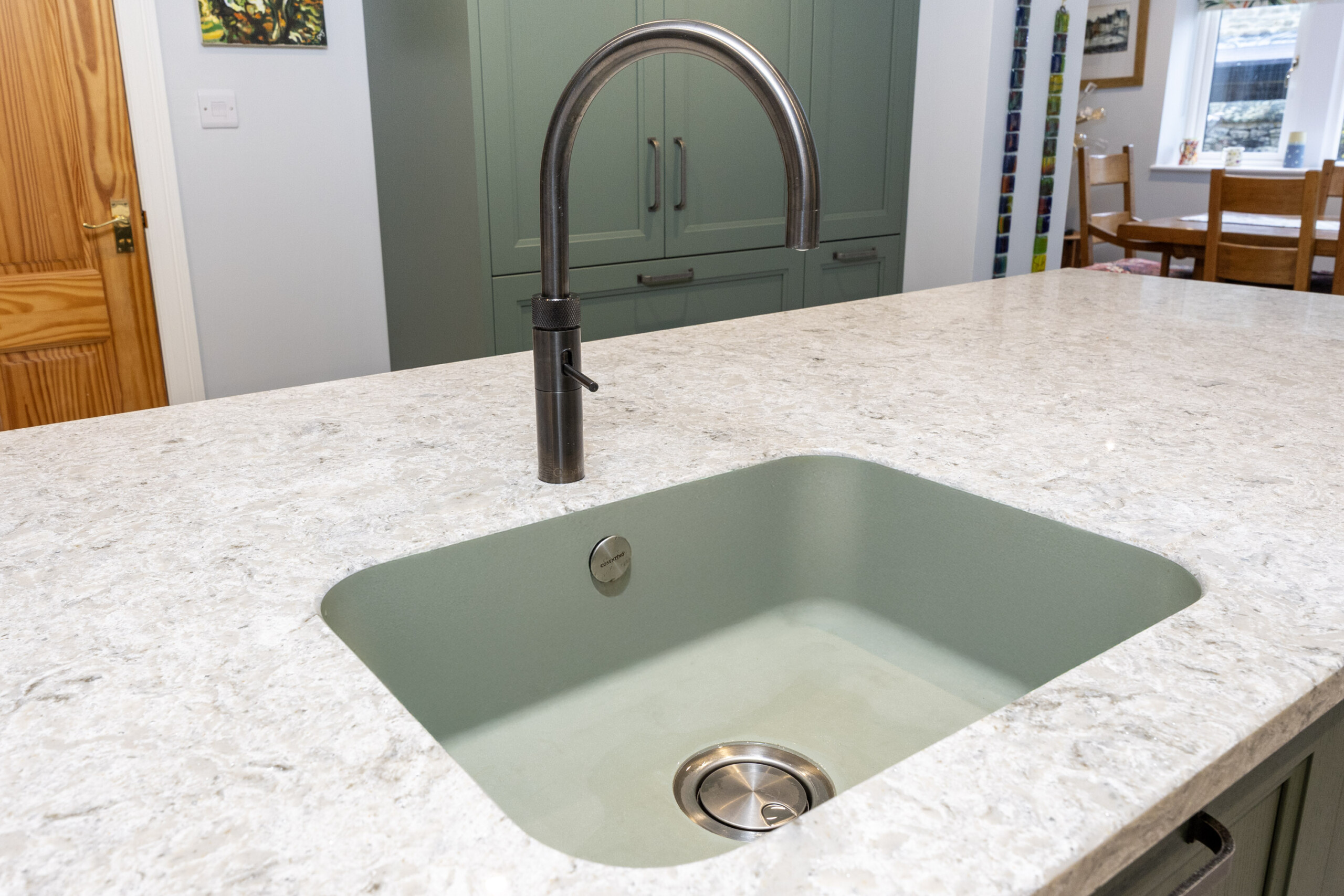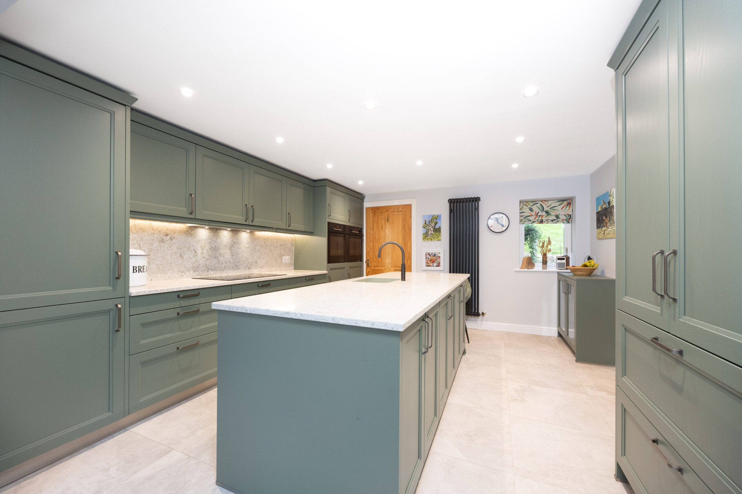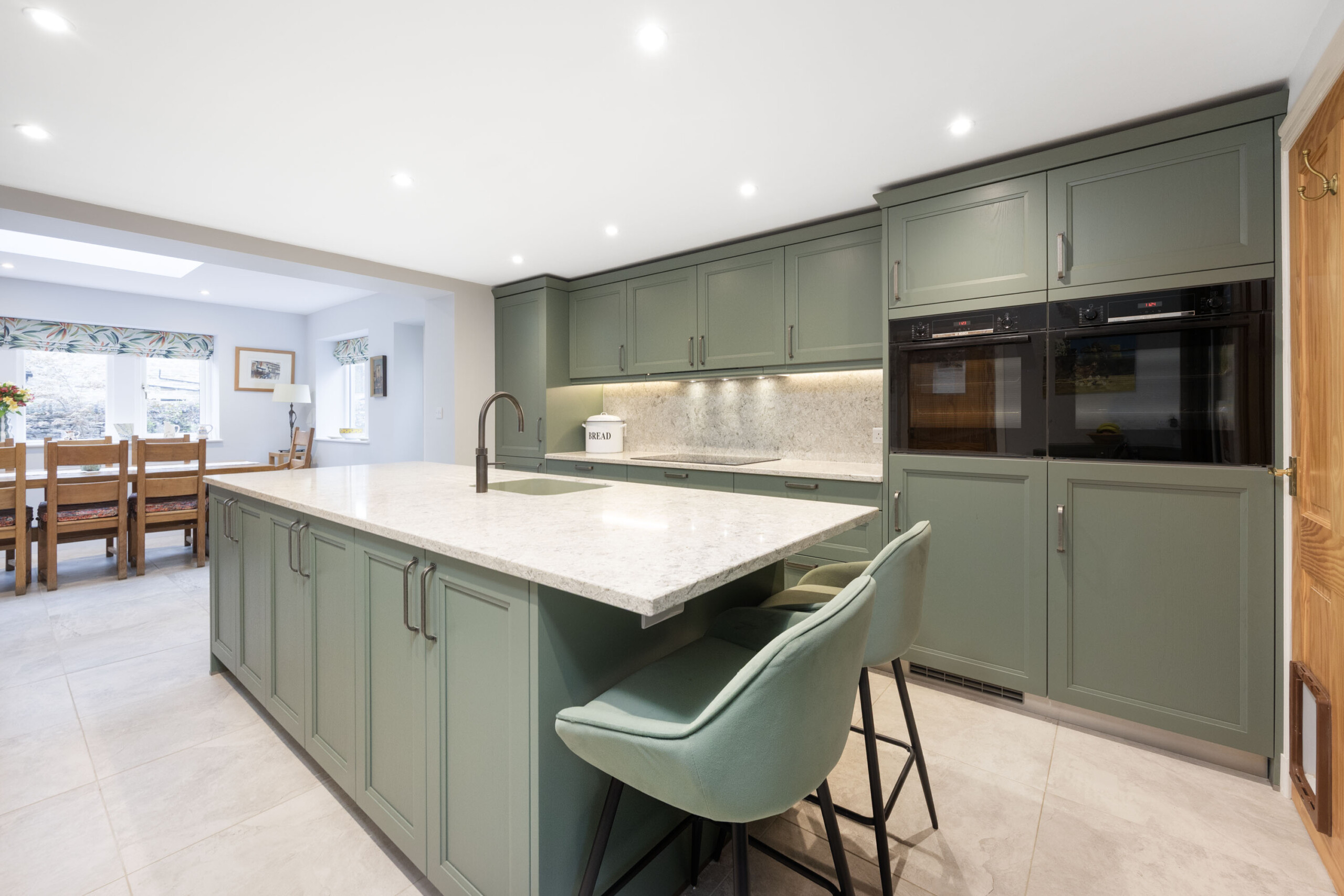 One colour says it all — Eucalyptus Green. This beautiful shade brings a calm, contemporary elegance to the space, creating a kitchen that feels both fresh and timeless. The rich tone adds warmth and depth, making it the perfect statement in modern design.