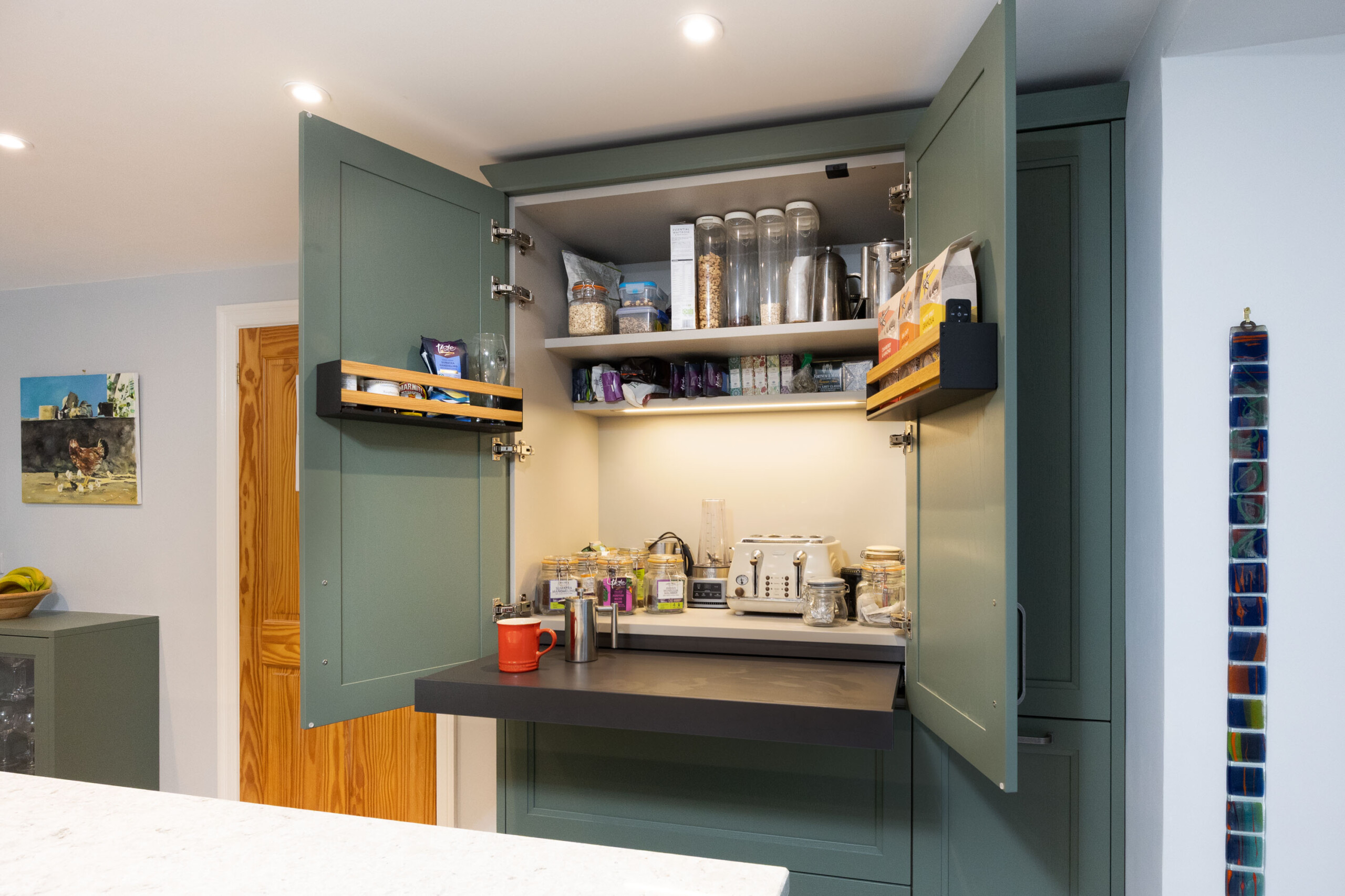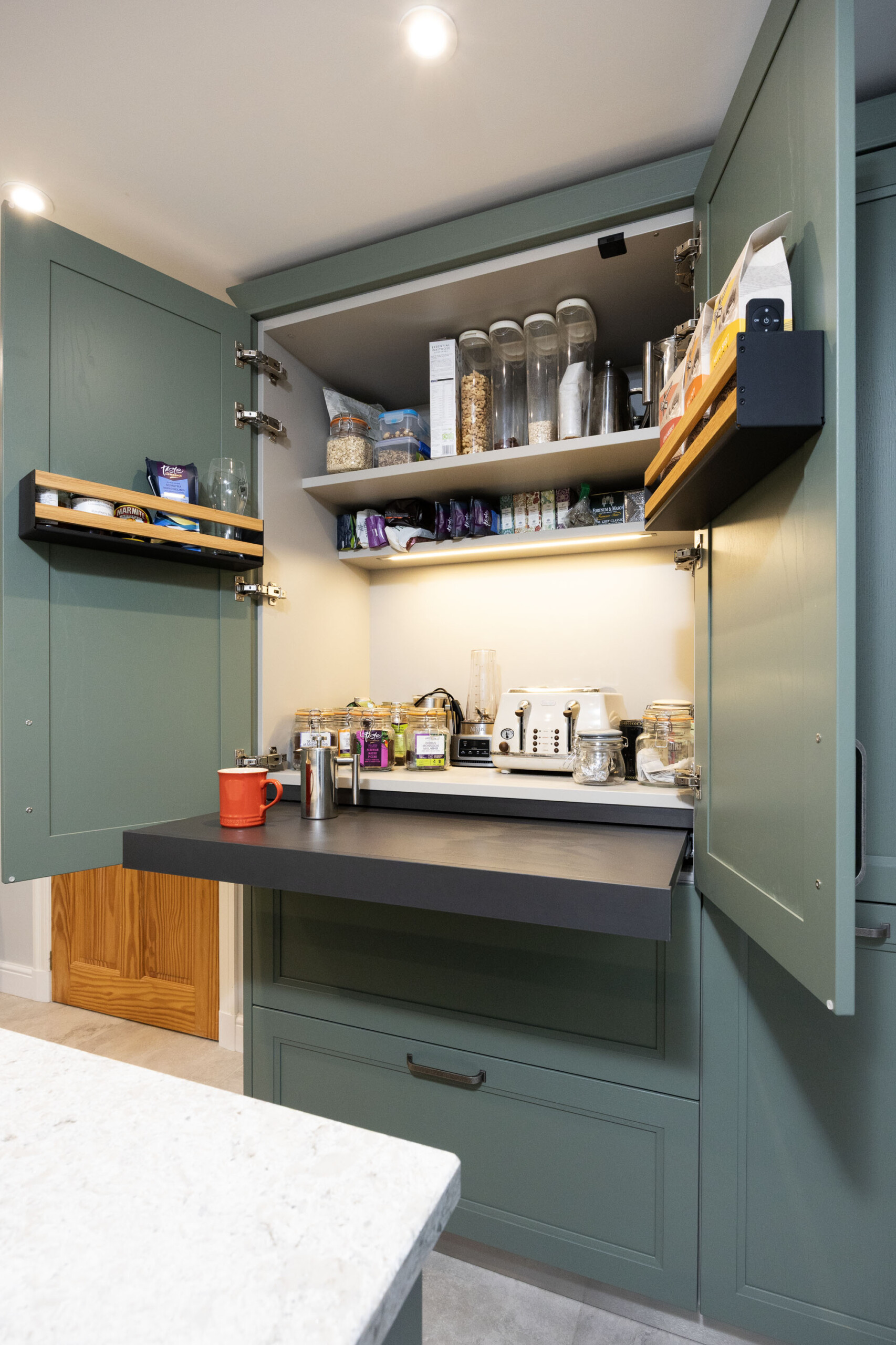 A true statement feature, the breakfast cupboard showcases clever design and exceptional space utilisation — perfectly blending practicality with visual impact.